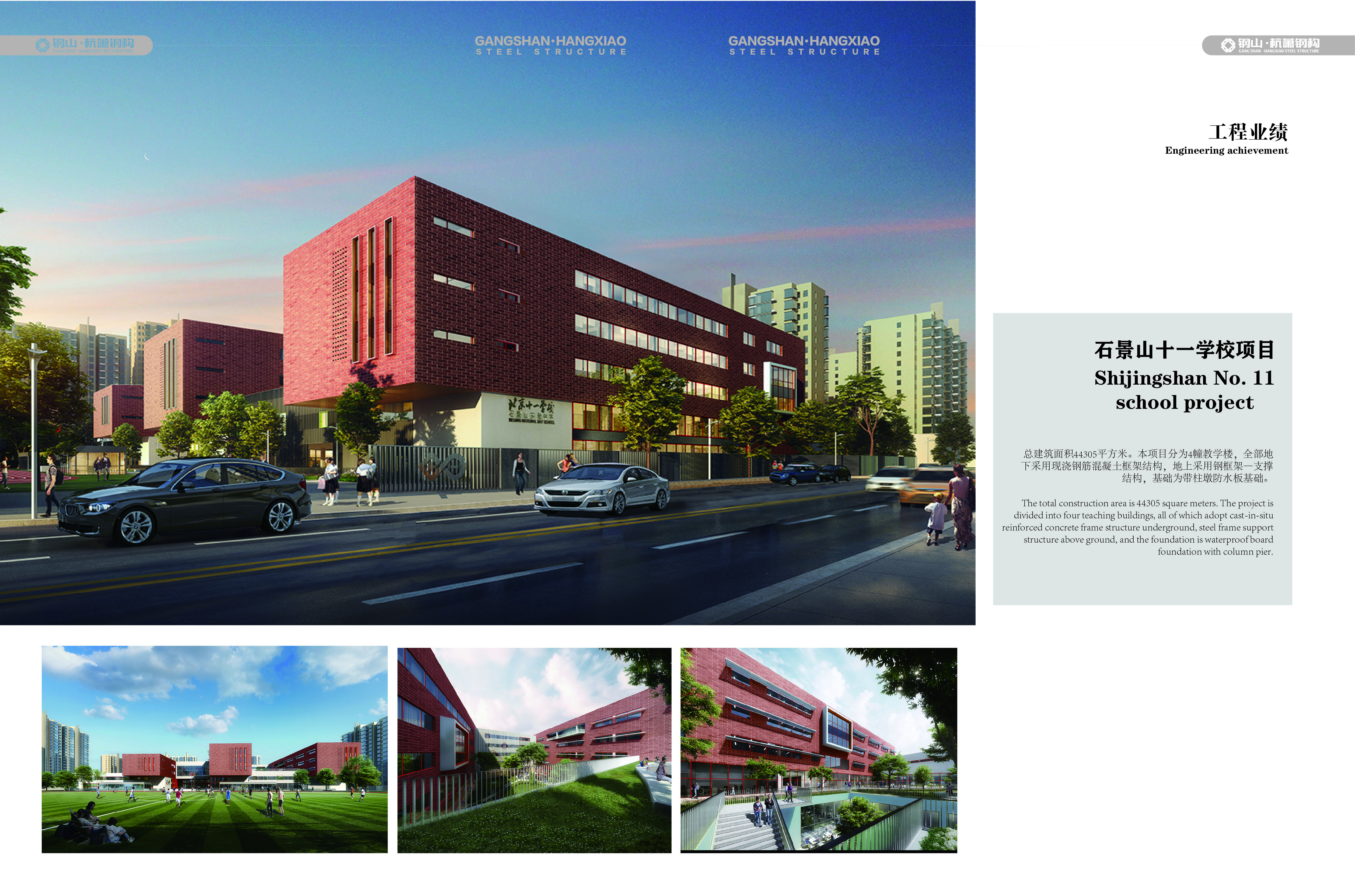 總建筑面積44305平方米。本項目分為4幢教學樓,全部地下采用現澆鋼筋混凝土框架結構,地上采用鋼框架一支撐結構,基礎為帶柱墩防水板基礎